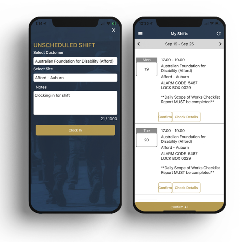 GPS monitoring is utilised to track staff’s attendance and time spent on site.